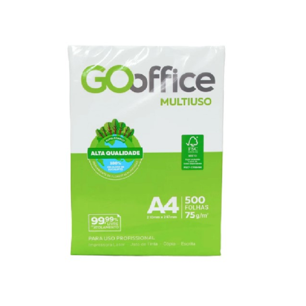 Papel A4 Sulfite 75g/m² – Marca Go Office – Tamanho 210mm X 297mm – Resma c/ 500 Folhas